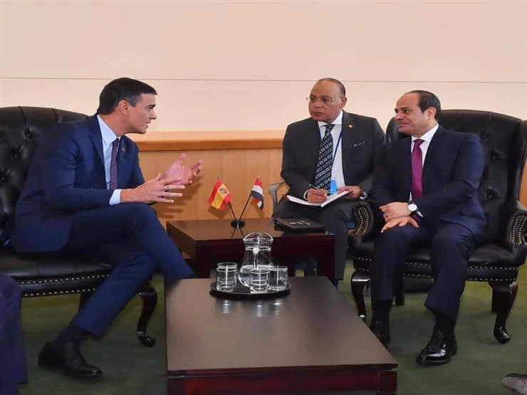 التقى اليوم الرئيس المصري عبد الفتاح السيسي في نيويورك مع رئيس وزراء أسبانيا بيدرو سانشيز على هامش أجتماع الجمعية العامة للأمم المتحدة. وقال المتحدث الرسمي بإسم رئاسة الجمهورية السفير بسام راضي أن الرئيس السيسي أشاد بالمستوى المتميز للعلاقات الثنائية بين مصر وأسبانيا، معرباً عن تطلع مصر لمواصلة الارتقاء بتلك العلاقات وتفعيل أطر التعاون المشترك على جميع المستويات. كما أعرب السيسي علي التنسيق الوثيق بين البلدين والمواقف إزاء القضايا الإقليمية والدولية ذات الاهتمام المشترك مؤكداً علي أهمية استمرار وتفعيل آليات التشاور المنتظم بين البلدين.