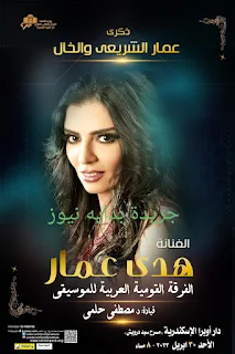 تحيي دار الاوبرا المصرية برئاسة الدكتور " خالد داغر " ذكرى اثنين من عمالقة النغم والكلمة هما الموسيقار عمار الشريعى وشاعر العامية الخال عبد الرحمن الابنودى من خلال حفل الفرقة القومية العربية للموسيقى المقام بقيادة المايسترو الدكتور مصطفى حلمى والذى تحل عليه الفنانة هدى عمار كضيف شرف وذلك فى الثامنة مساء الاحد 30 ابريل 2023 على مسرح سيد درويش " اوبرا الاسكندرية " .